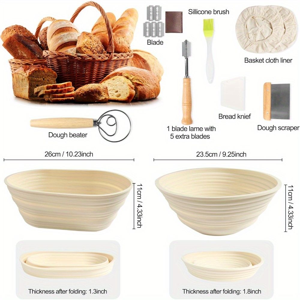 2.Sourdough Proofing Basket Set: The 10-inch round and 9-inch oval combination allows you to make different shapes of bread. Our bread basket proofing is versatile and can be used for a variety of dough types, including sourdough, whole wheat, and more.